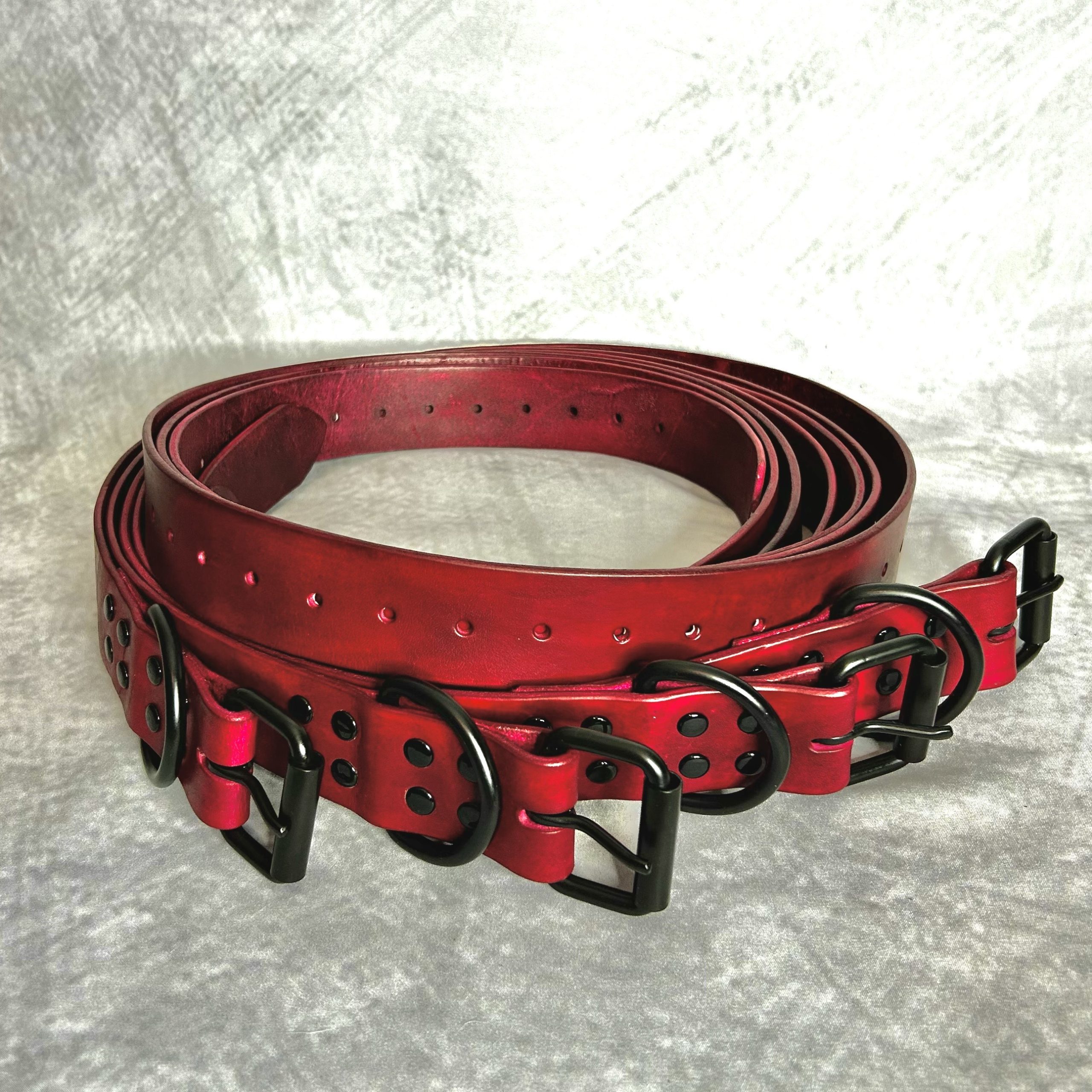 Shibari isn’t for every body or every situation. That’s why everyone should have a set of bondage belts on hand. These are built from premium cow leather and heavy duty steel hardware to ensure comfortable and secure restraint. Each strap is 1.5” wide and features a roller bar buckle and a D-ring for securing to hard points. Available in black, brown, oxblood, purple, and green.